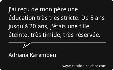 J'ai reçu de mon père une éducation très très stricte. De 5 ans jusqu'à 20 ans, j'étais une fille éteinte, très timide, très réservée.