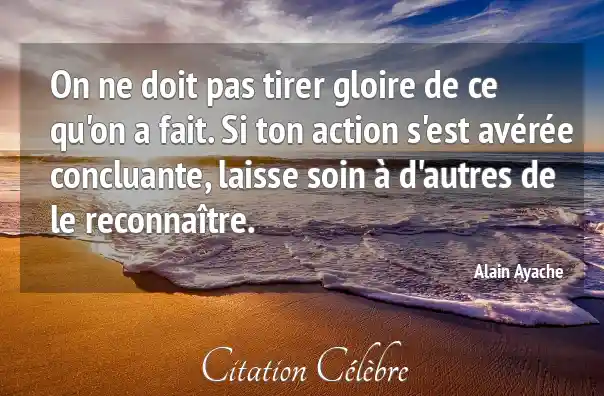 On ne doit pas tirer gloire de ce qu'on a fait. Si ton action s'est avérée concluante, laisse soin à d'autres de le reconnaître.