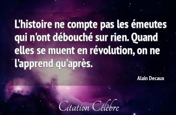 L'histoire ne compte pas les émeutes qui n'ont débouché sur rien. Quand elles se muent en révolution, on ne l'apprend qu'après.