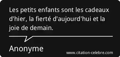Les petits enfants sont les cadeaux d'hier, la fierté d'aujourd'hui et la joie de demain.