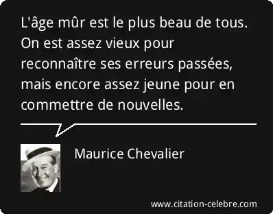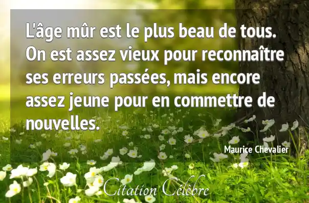 L'âge mûr est le plus beau de tous. On est assez vieux pour reconnaître ses erreurs passées, mais encore assez jeune pour en commettre de nouvelles.