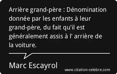 Arrière grand-père : Dénomination donnée par les enfants à leur grand-père, du fait qu'il est généralement assis à l' arrière de la voiture.