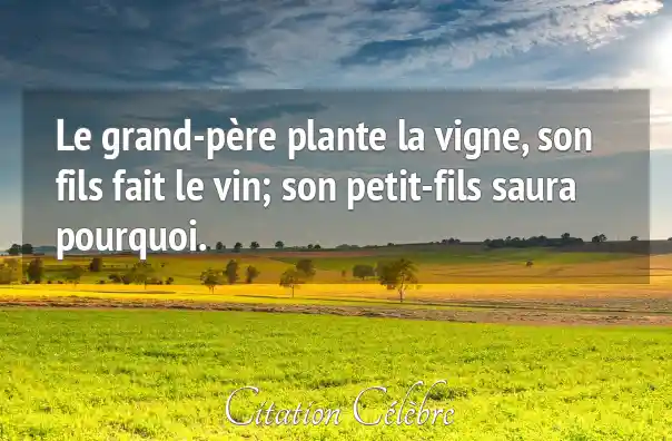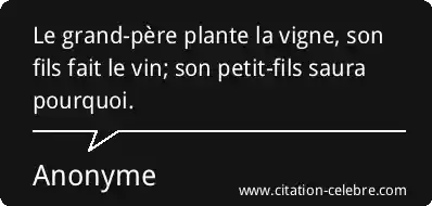 Le grand-père plante la vigne, son fils fait le vin; son petit-fils saura pourquoi.