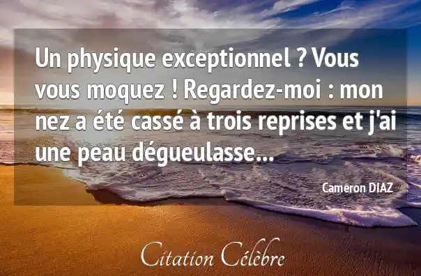 Un physique exceptionnel ? Vous vous moquez ! Regardez-moi : mon nez a été cassé à trois reprises et j'ai une peau dégueulasse...