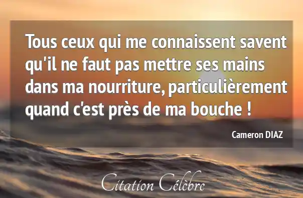 Tous ceux qui me connaissent savent qu'il ne faut pas mettre ses mains dans ma nourriture, particulièrement quand c'est près de ma bouche !