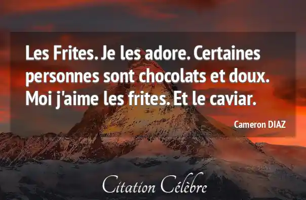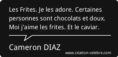 Les Frites. Je les adore. Certaines personnes sont chocolats et doux. Moi j'aime les frites. Et le caviar.