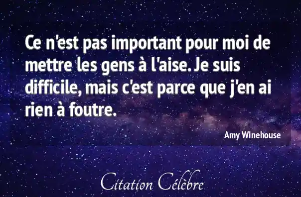 Ce n'est pas important pour moi de mettre les gens à l'aise. Je suis difficile, mais c'est parce que j'en ai rien à foutre.