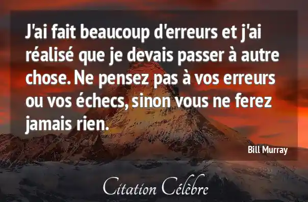 J'ai fait beaucoup d'erreurs et j'ai réalisé que je devais passer à autre chose. Ne pensez pas à vos erreurs ou vos échecs, sinon vous ne ferez jamais rien.