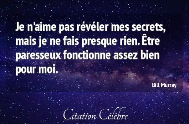 Je n'aime pas révéler mes secrets, mais je ne fais presque rien. Être paresseux fonctionne assez bien pour moi.