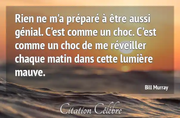 Rien ne m'a préparé à être aussi génial. C'est comme un choc. C'est comme un choc de me réveiller chaque matin dans cette lumière mauve.