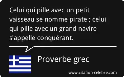 Celui qui pille avec un petit vaisseau se nomme pirate ; celui qui pille avec un grand navire s'appelle conquérant.