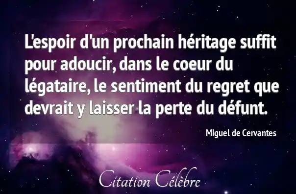 L'espoir d'un prochain héritage suffit pour adoucir, dans le coeur du légataire, le sentiment du regret que devrait y laisser la perte du défunt.