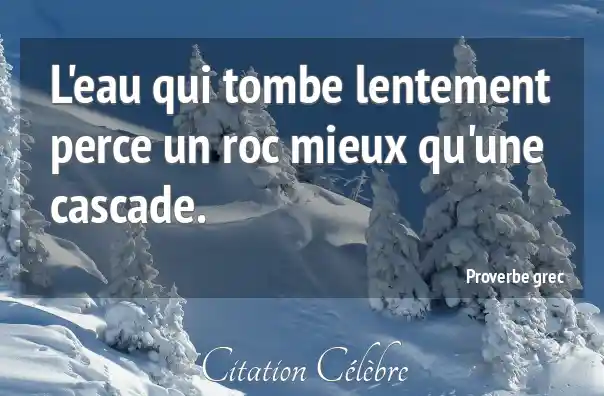 L'eau qui tombe lentement perce un roc mieux qu'une cascade.