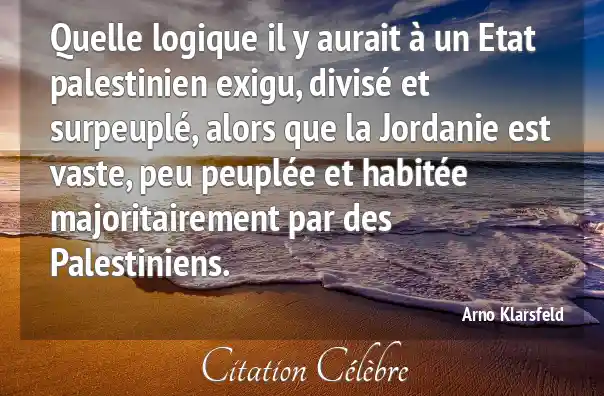 Quelle logique il y aurait à un Etat palestinien exigu, divisé et surpeuplé, alors que la Jordanie est vaste, peu peuplée et habitée majoritairement par des Palestiniens.