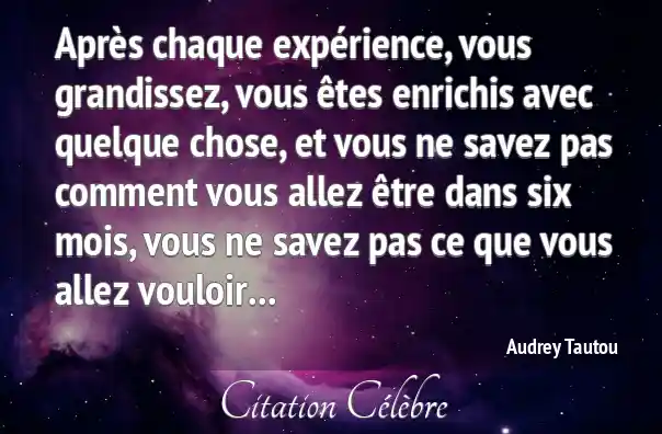 Après chaque expérience, vous grandissez, vous êtes enrichis avec quelque chose, et vous ne savez pas comment vous allez être dans six mois, vous ne savez pas ce que vous allez vouloir...