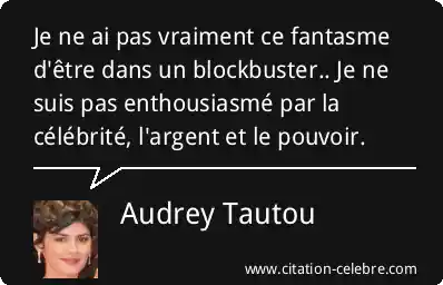 Je ne ai pas vraiment ce fantasme d'être dans un blockbuster.. Je ne suis pas enthousiasmé par la célébrité, l'argent et le pouvoir.