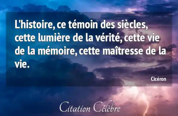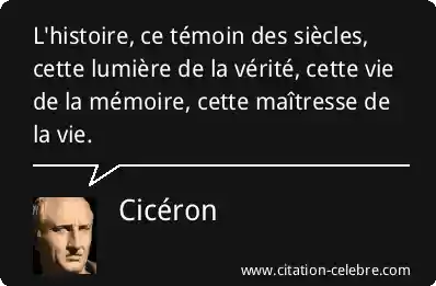 L'histoire, ce témoin des siècles, cette lumière de la vérité, cette vie de la mémoire, cette maîtresse de la vie.