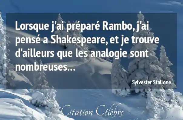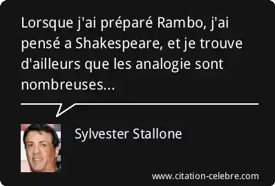 Lorsque j'ai préparé Rambo, j'ai pensé a Shakespeare, et je trouve d'ailleurs que les analogie sont nombreuses...