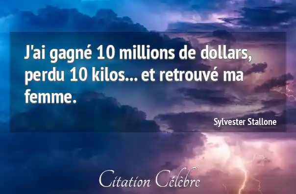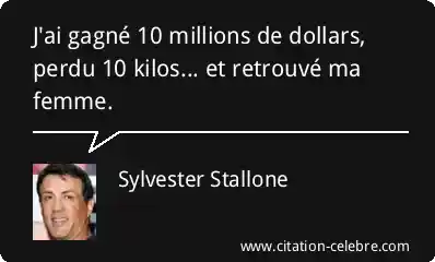 Citation Sylvester Stallone femme : J'ai gagné 10 millions de dollars, perdu 10 kilos... et...
