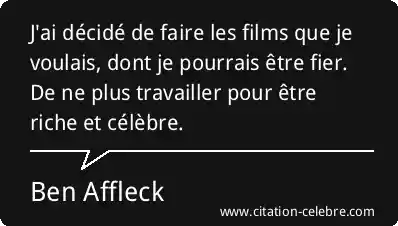 J'ai décidé de faire les films que je voulais, dont je pourrais être fier. De ne plus travailler pour être riche et célèbre.
