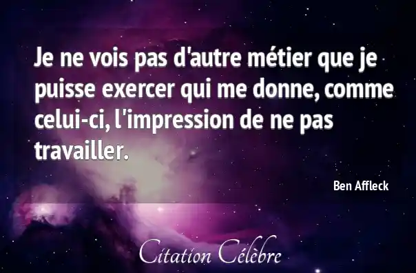 Je ne vois pas d'autre métier que je puisse exercer qui me donne, comme celui-ci, l'impression de ne pas travailler.