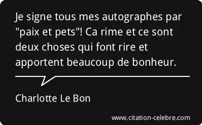 Citation Charlotte Le Bon bonheur : Je signe tous mes autographes par