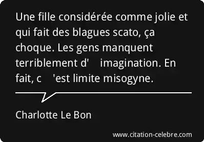 Une fille considérée comme jolie et qui fait des blagues scato, ça choque. Les gens manquent terriblement d'Â’imagination. En fait, cÂ’'est limite misogyne.