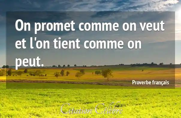 Proverbe  Français Veut : On promet comme on veut et l'on tient comme on...