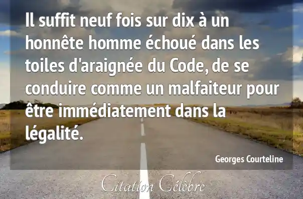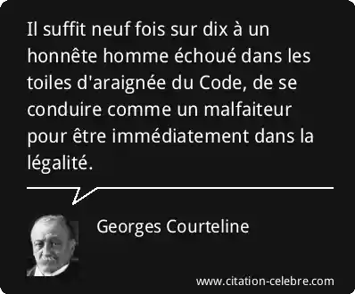 Il suffit neuf fois sur dix à un honnête homme échoué dans les toiles d'araignée du Code, de se conduire comme un malfaiteur pour être immédiatement dans la légalité.