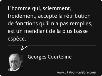 L'homme qui, sciemment, froidement, accepte la rétribution de fonctions qu'il n'a pas remplies, est un mendiant de la plus basse espèce.