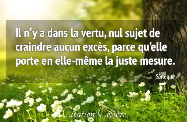 Il n'y a dans la vertu, nul sujet de craindre aucun excès, parce qu'elle porte en elle-même la juste mesure.