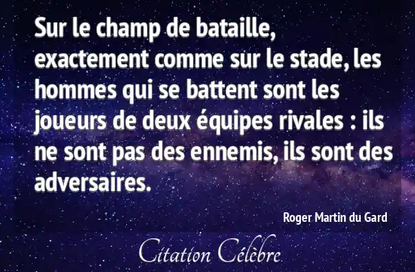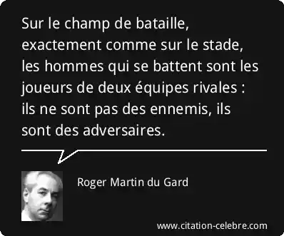 Sur le champ de bataille, exactement comme sur le stade, les hommes qui se battent sont les joueurs de deux équipes rivales : ils ne sont pas des ennemis, ils sont des adversaires.