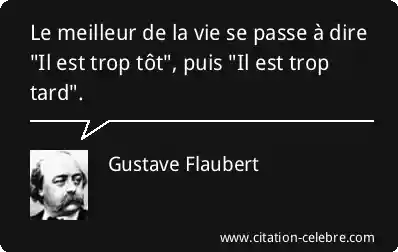Le meilleur de la vie se passe à dire "Il est trop tôt", puis "Il est trop tard".