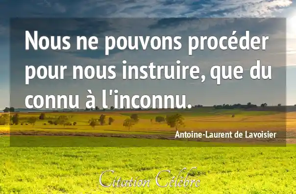 Nous ne pouvons procéder pour nous instruire, que du connu à l'inconnu.