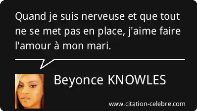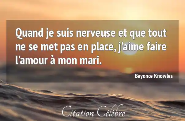 Quand je suis nerveuse et que tout ne se met pas en place, j'aime faire l'amour à mon mari.