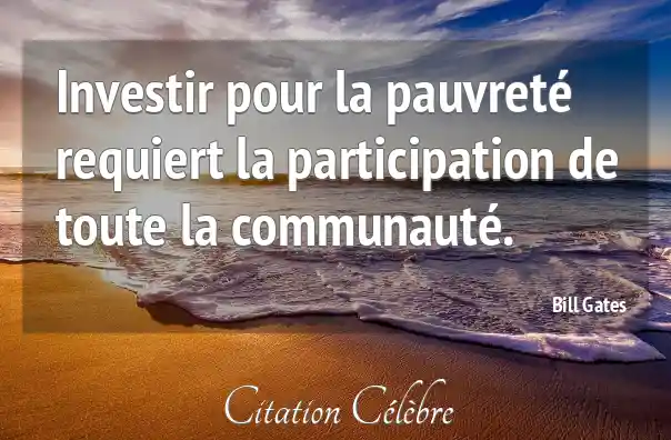 Investir pour la pauvreté requiert la participation de toute la communauté.