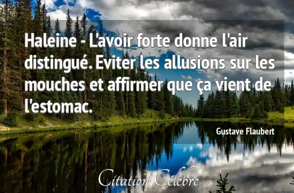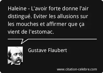 Haleine - L'avoir forte donne l'air distingué. Eviter les allusions sur les mouches et affirmer que ça vient de l'estomac.