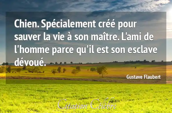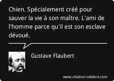 Chien. Spécialement créé pour sauver la vie à son maître. L'ami de l'homme parce qu'il est son esclave dévoué.