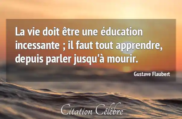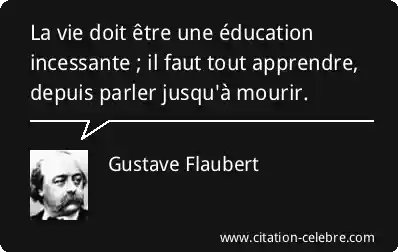 La vie doit être une éducation incessante ; il faut tout apprendre, depuis parler jusqu'à mourir.
