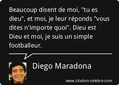 Beaucoup disent de moi, "tu es dieu", et moi, je leur réponds "vous dites n'importe quoi". Dieu est Dieu et moi, je suis un simple footballeur.