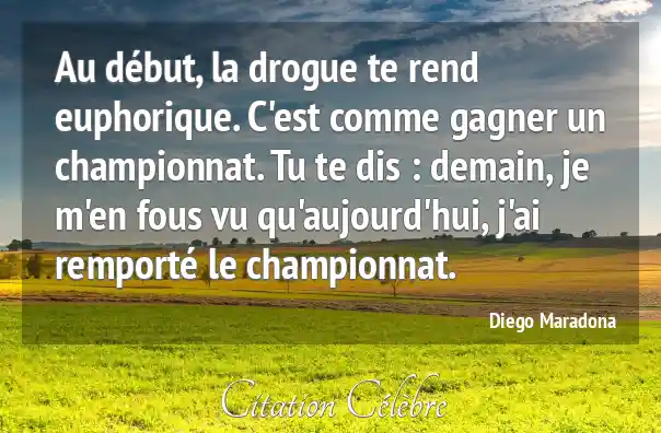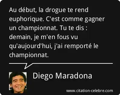 Au début, la drogue te rend euphorique. C'est comme gagner un championnat. Tu te dis : demain, je m'en fous vu qu'aujourd'hui, j'ai remporté le championnat.