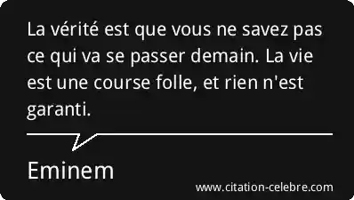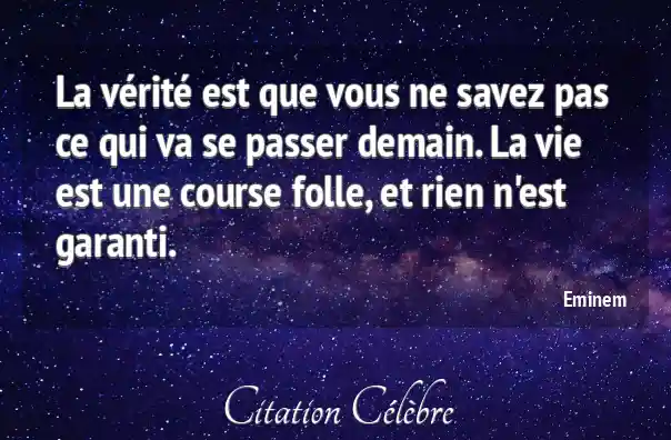 La vérité est que vous ne savez pas ce qui va se passer demain. La vie est une course folle, et rien n'est garanti.