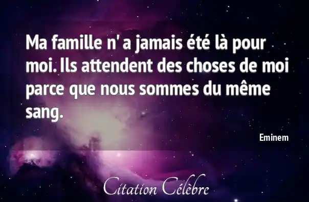 Ma famille n' a jamais été là pour moi. Ils attendent des choses de moi parce que nous sommes du même sang.