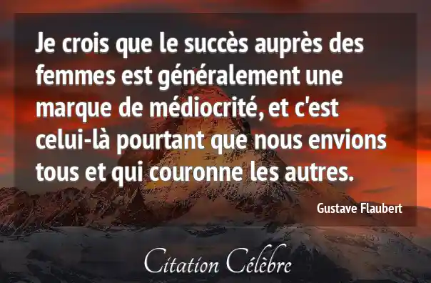 Je crois que le succès auprès des femmes est généralement une marque de médiocrité, et c'est celui-là pourtant que nous envions tous et qui couronne les autres.