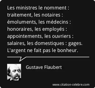 Les ministres le nomment : traitement, les notaires : émoluments, les médecins : honoraires, les employés : appointements, les ouvriers : salaires, les domestiques : gages. L'argent ne fait pas le bonheur.