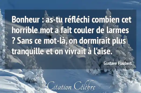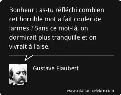Bonheur : as-tu réfléchi combien cet horrible mot a fait couler de larmes ? Sans ce mot-là, on dormirait plus tranquille et on vivrait à l'aise.