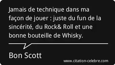 Jamais de technique dans ma façon de jouer : juste du fun de la sincérité, du Rock& Roll et une bonne bouteille de Whisky.
