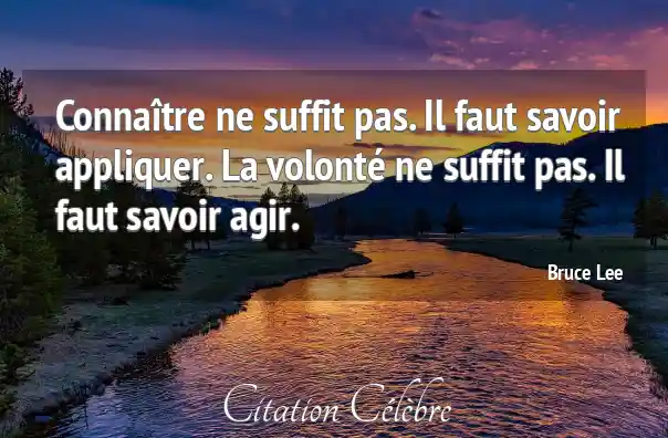 Connaître ne suffit pas. Il faut savoir appliquer. La volonté ne suffit pas. Il faut savoir agir.