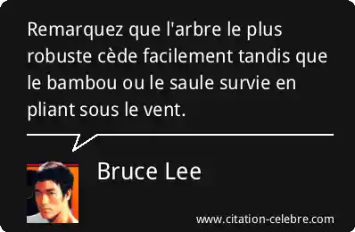 Citation Bruce Lee arbre : Remarquez que l'arbre le plus robuste cède facilement tandis que...