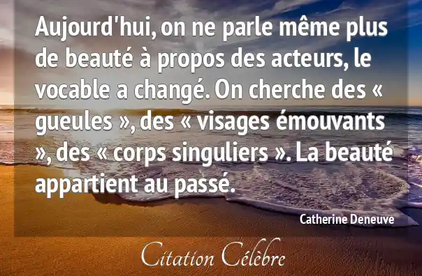 Aujourd'hui, on ne parle même plus de beauté à propos des acteurs, le vocable a changé. On cherche des « gueules », des « visages émouvants », des « corps singuliers ». La beauté appartient au passé.